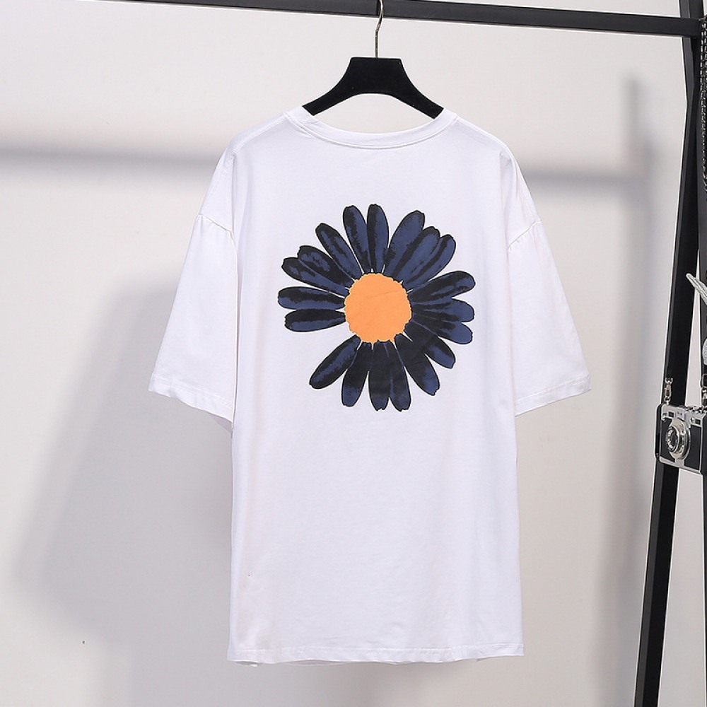 Plus Size Women's Summer New Fat Daisy Print T-Shirt