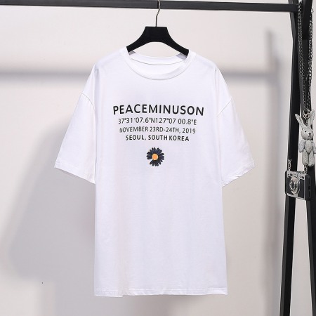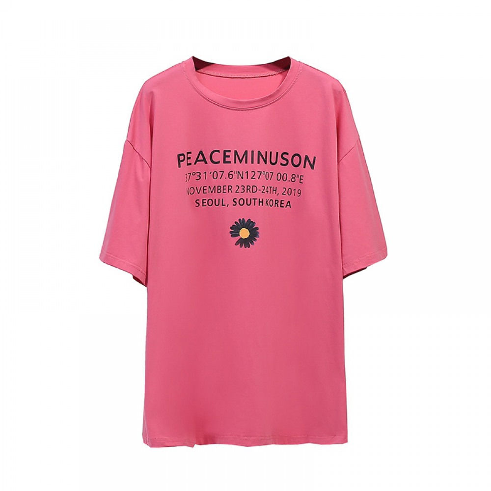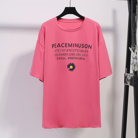 Fat Plus Size Women's Pure Color Wild Thin Love Printing Short-Sleeved T-Shirt Women