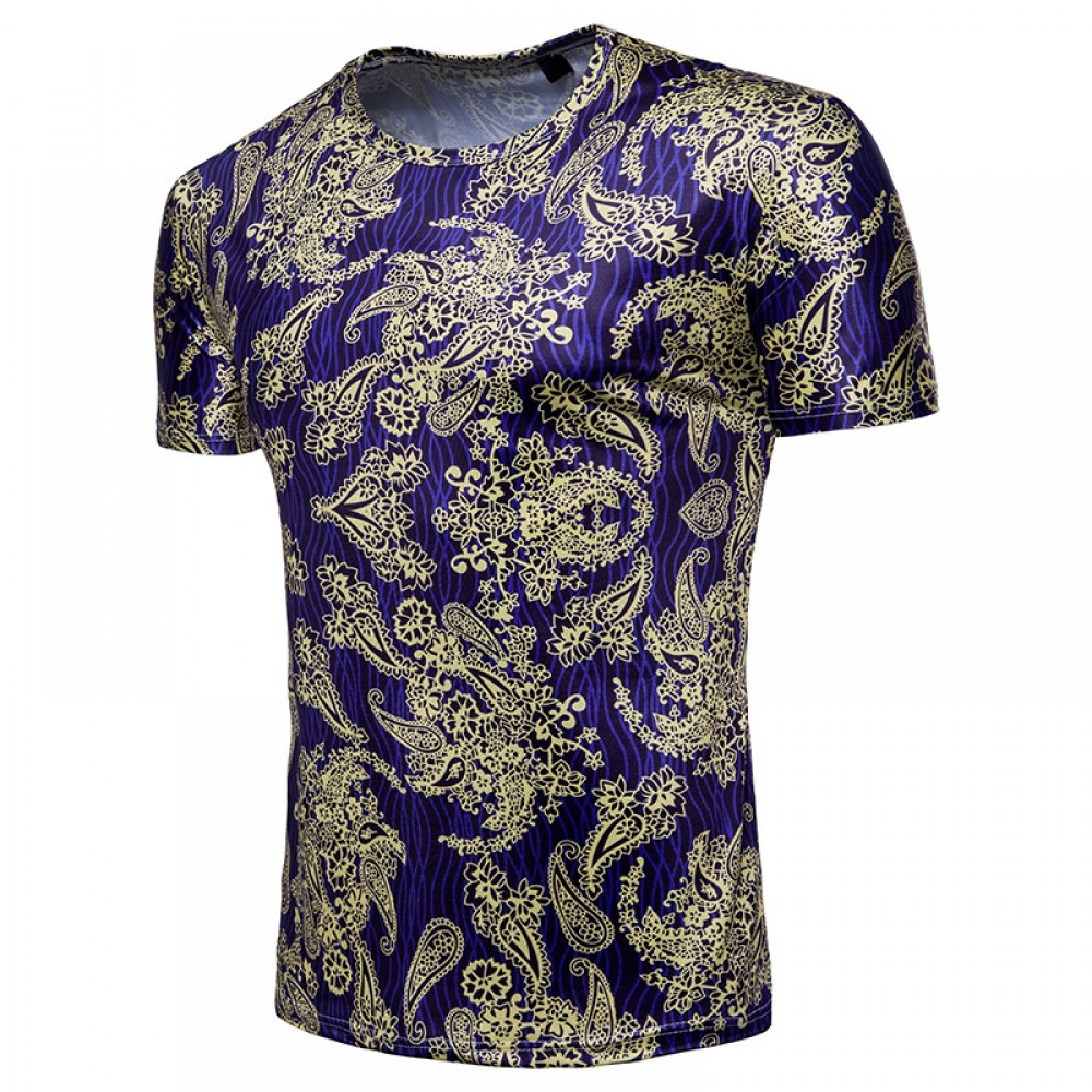 Men's 3D Printing Short-Sleeved T-Shirt Gold Printing Palace Style Printing