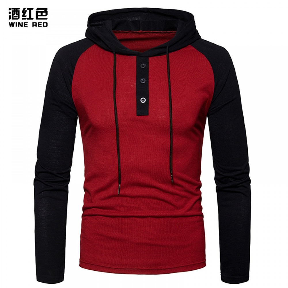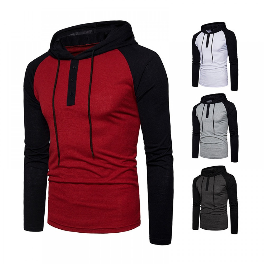 Men's Hip-Hop Access Control Color Matching Men's Raglan Long-Sleeved Sports Hoodie Pullover