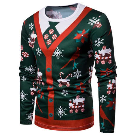 New 3D Personality Printing Fashion Men's Christmas Long-Sleeved T-Shirt