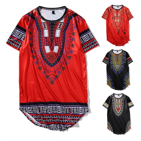 New Men's Flat Tile Large Size Hip-Hop Celebrity Style Long Short Sleeve T-Shirt