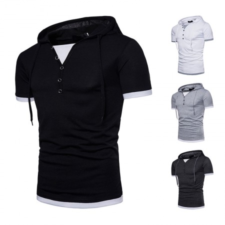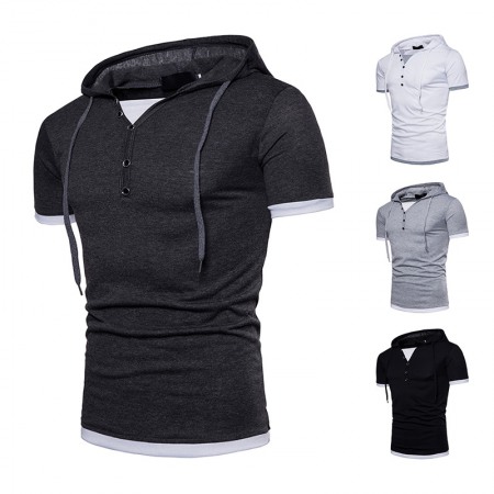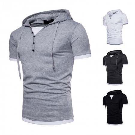 New Men's Plus Size Hip-Hop Short-Sleeved Hooded T-Shirt
