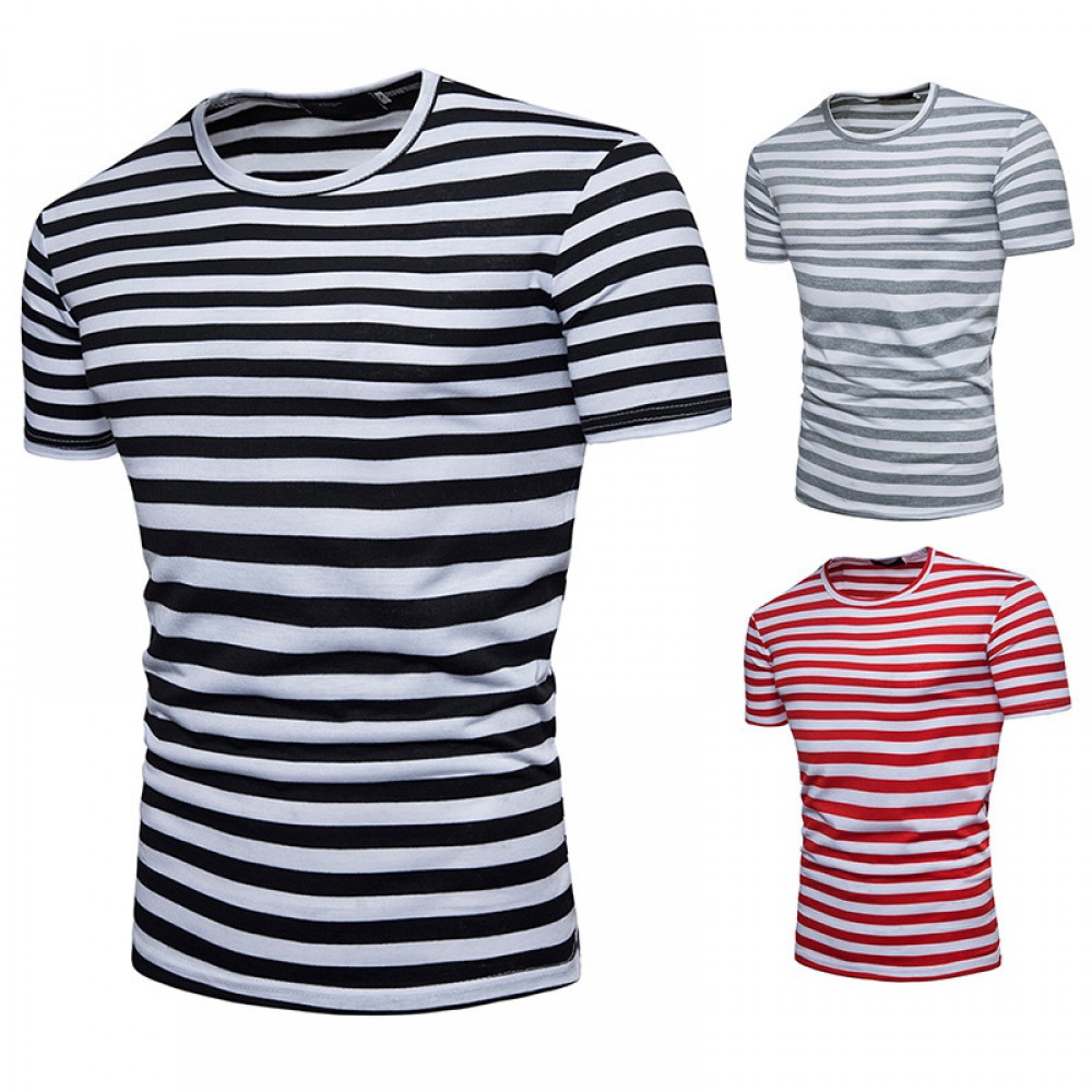New Summer Men's Short-Sleeved T-Shirt Mens Contrast Striped Slim-Fit T-Shirt