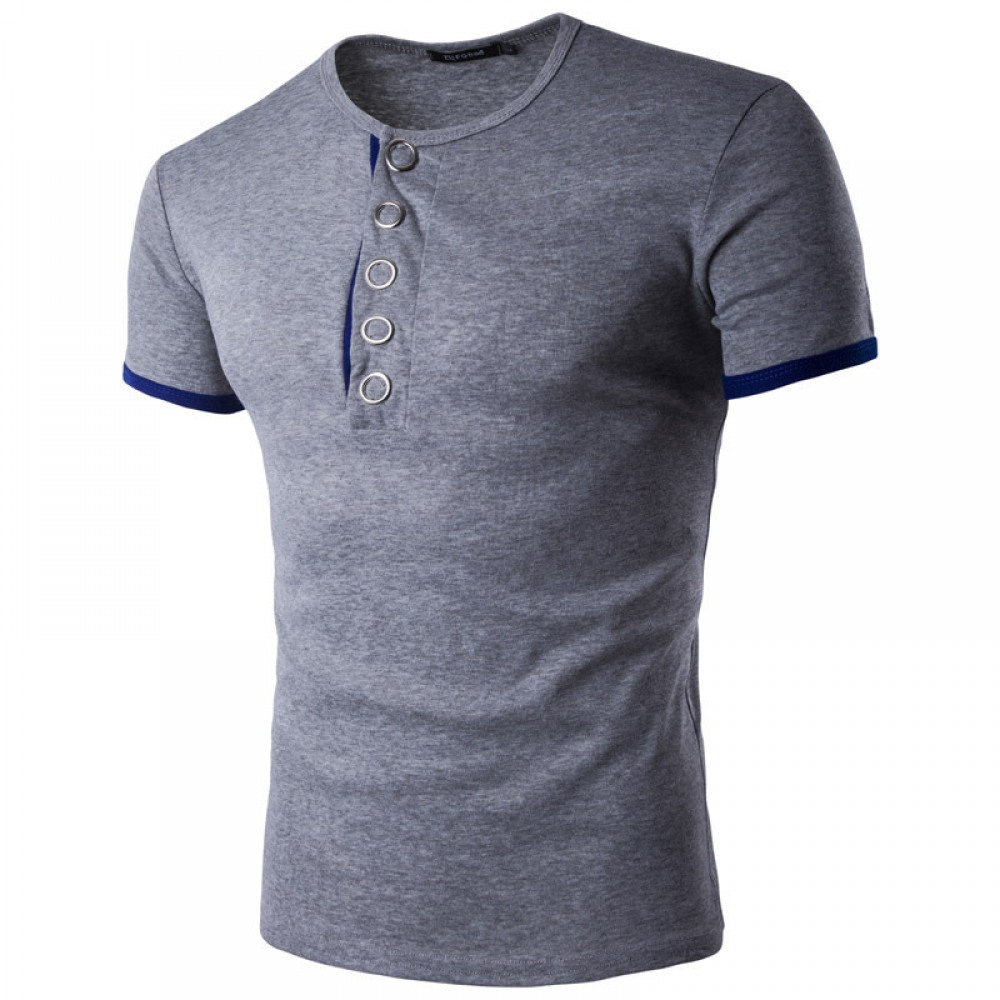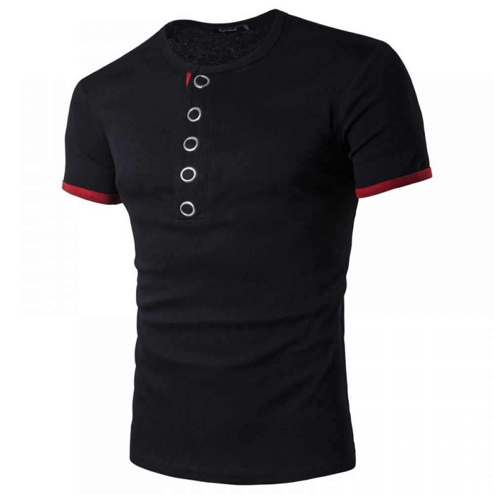 New Summer Men's Placket Knock Button Hit Color Short-Sleeved Bottoming T-Shirt Casual Lapel Bottoming Shirt