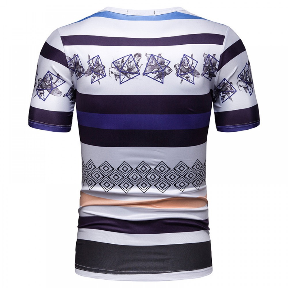 New Summer Men's Short-Sleeved T-Shirt Mens Contrast Striped Slim Casual T-Shirt
