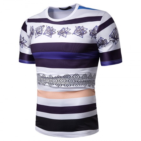 New Men's Plus Size Striped Short Sleeve T-Shirt