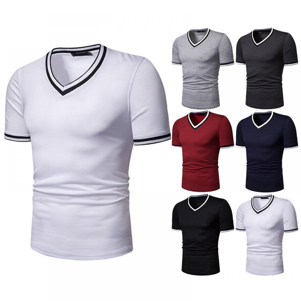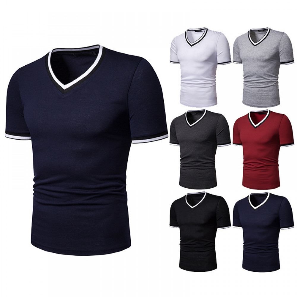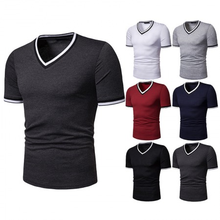 New Summer Thin High Stretch Men's V-Neck Short-Sleeved T-Shirt