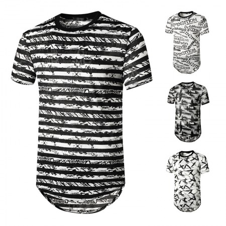 New Machi Striped Stars 3D Printing Men's Stitching Short Sleeve T-Shirt